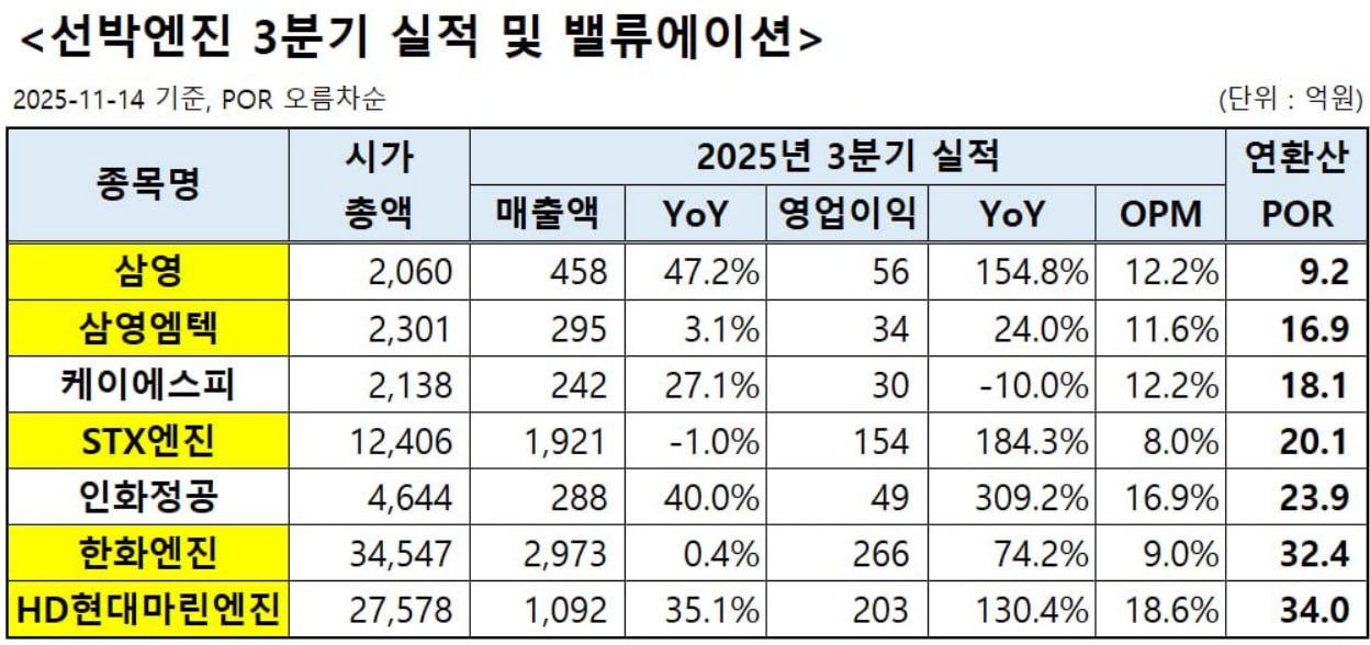 선박엔진 3분기 실적