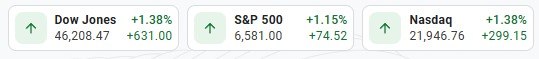 Down +631, S&P 500 +74.52, Nasdaq +299