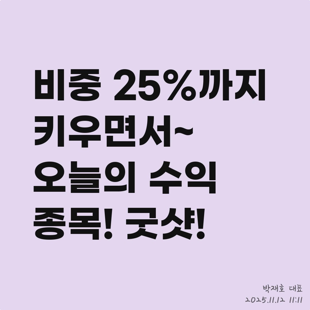 비중 25%까지 키우면서~ 오늘의 수익 종목! 굿샷!