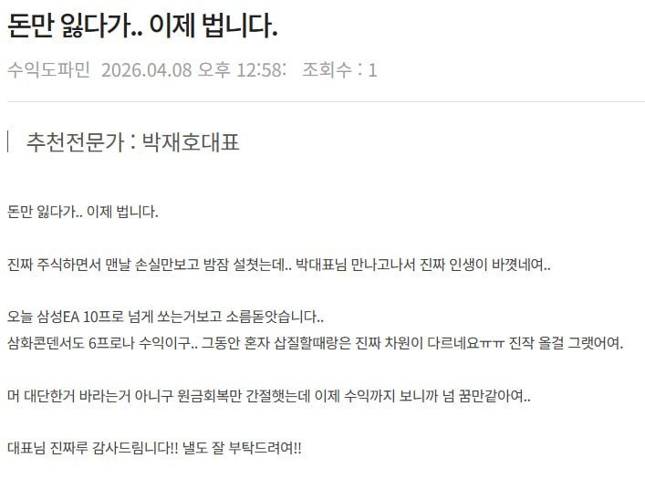진짜 주식하면서 맨날 손실만보고 밤잠 설쳣는데.. 박대표님 만나고나서 진짜 인생이 바꼇네여..