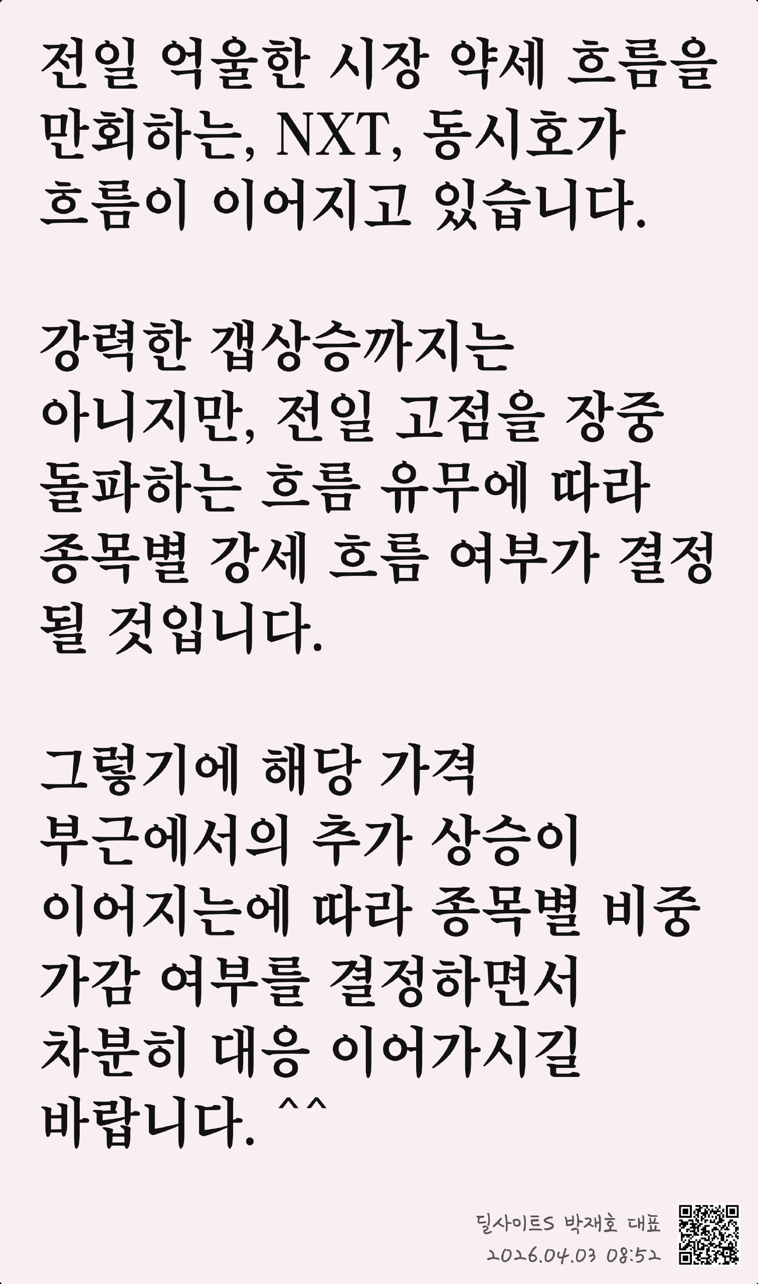 그렇기에 해당 가격 부근에서의 추가 상승이 이어지는에 따라 종목별 비중 가감 여부를 결정하면서 차분히 대응 이어가시길 바랍니다. ^^