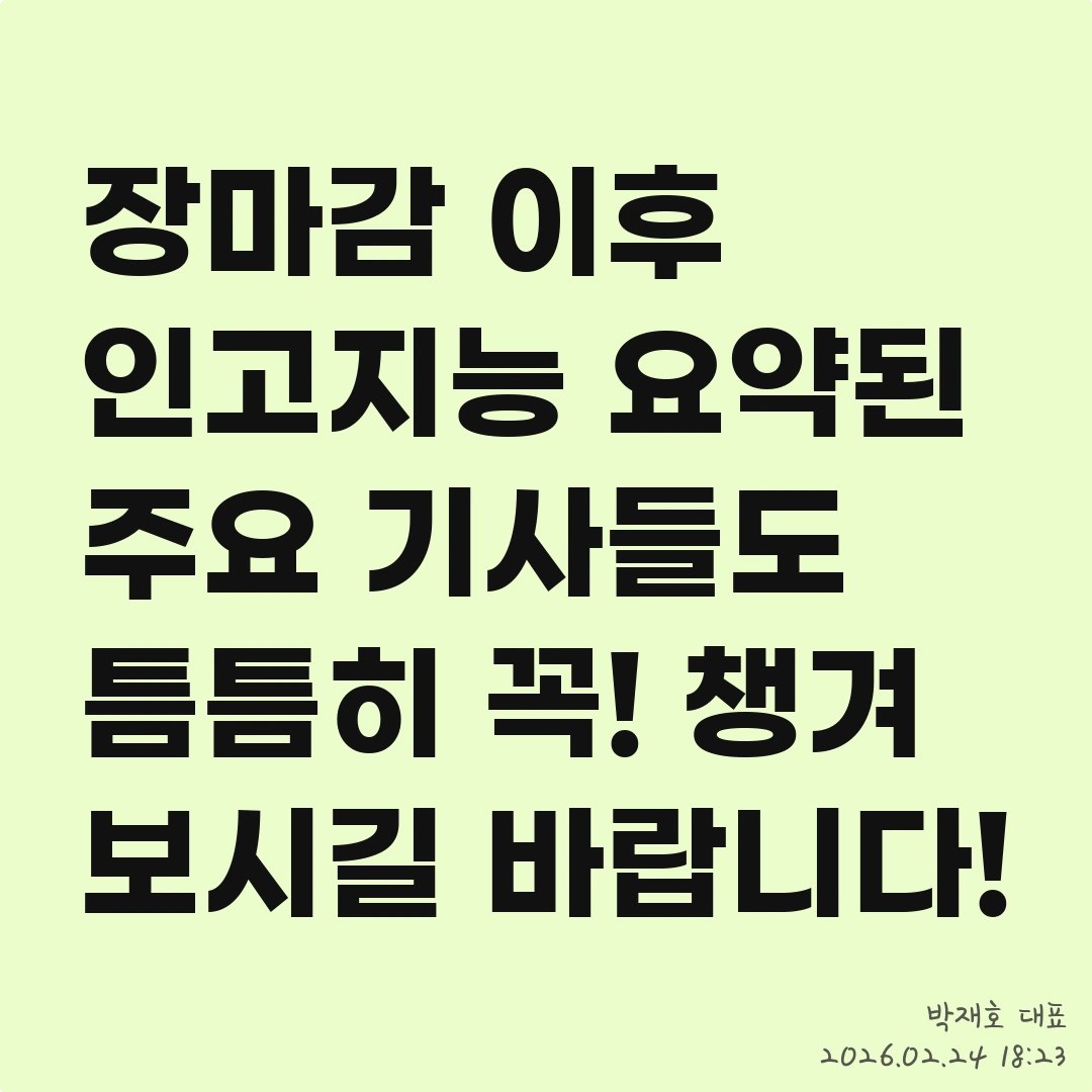 장마감 이후 인고지능 요약된 주요 기사들도 틈틈히 꼭! 챙겨 보시길 바랍니다!