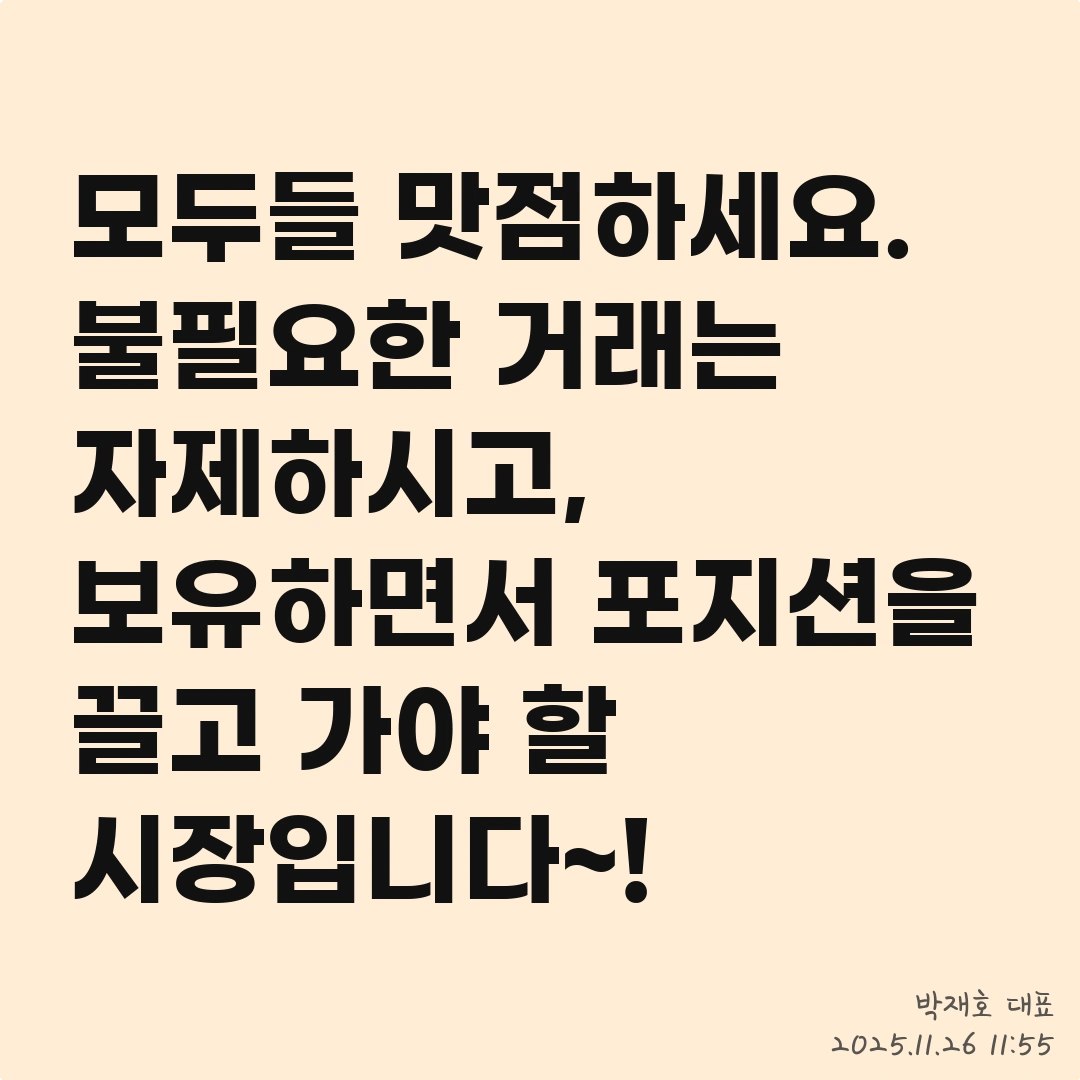 모두들 맛점하세요. 불필요한 거래는 자제하시고, 보유하면서 포지션을 끌고 가야 할 시장입니다~!