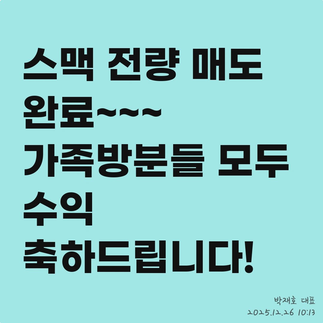 스맥 전량 매도 완료~~~ 가족방분들 모두 수익 축하드립니다!