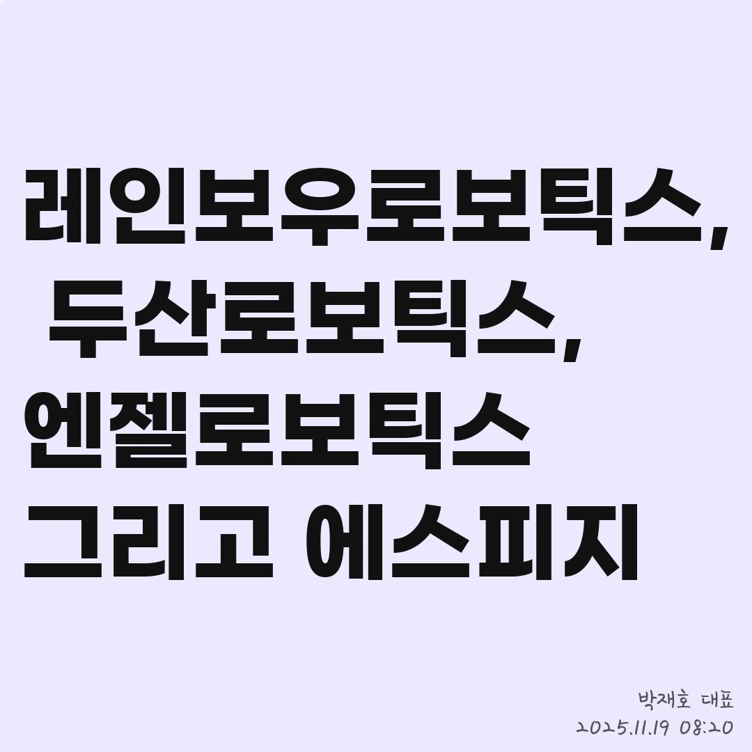 레인보우로보틱스, 두산로보틱스, 엔젤로보틱스 그리고 에스피지
