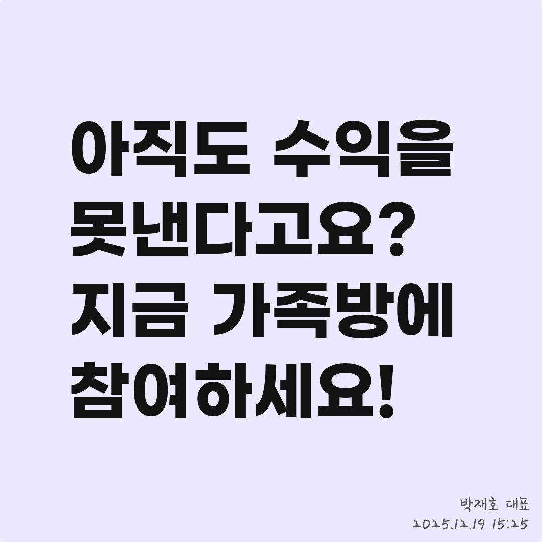 아직도 수익을 못낸다고요? 지금 가족방에 참여하세요!