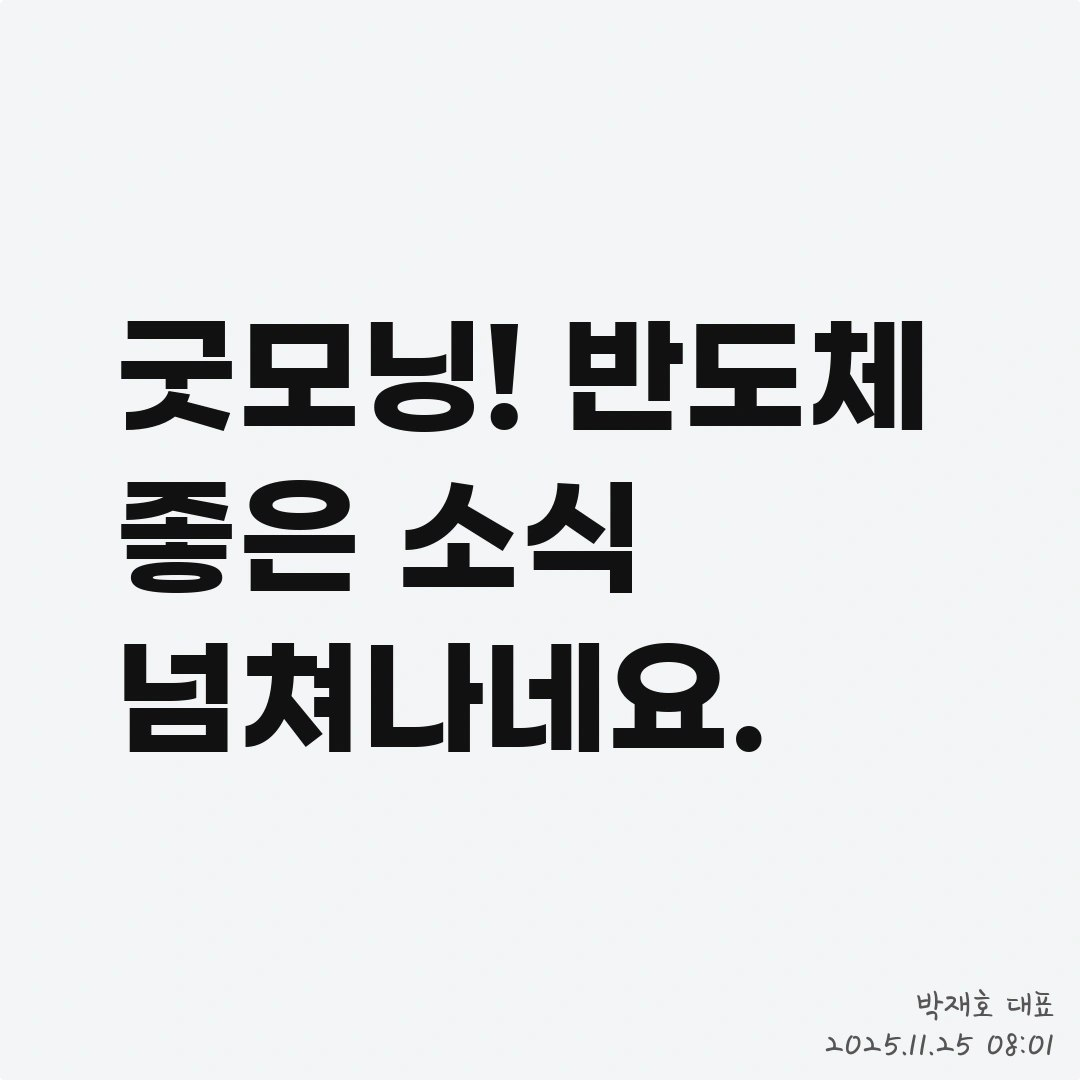 굿모닝! 반도체 좋은 소식 넘쳐나네요.