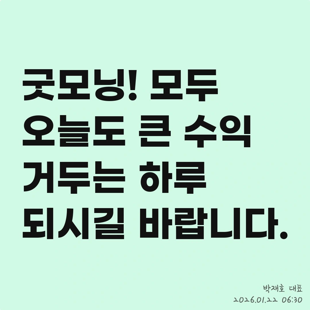 굿모닝! 모두 오늘도 큰 수익 거두는 하루 되시길 바랍니다.